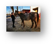 Manjana, Lewitzer (nachzu ausgestorbene Haustierrasse), 25 Jahre , Stute hat durch einen „Schieffuß“ Bewegungsprobleme und Schmerzen, nach wenigen Tagen stellte sich hier eine deutliche Verbesserung im gesamten Bewegungsapparat ein, selbst ihr deutliches Humpeln ist nahezu weg. Die normalen (chemischen) Medikamenten haben wir komplett eingestellt.