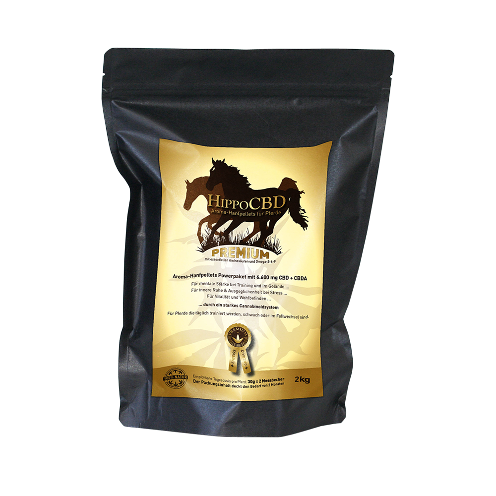 Mit HippoCBD Premium erhältst Du Premium-Hanfpellets, welche Zusammenarbeit mit Tierärzten optimiert wurden, so dass dein Pferd damit die umfassende Wirkung von Hanf, angefangen von den Cannabinoiden bis hin zu allen natürlichen Nährstoffen enthält und so dein Pferd optimal unterstützt. Mit Hippocbd Hanfpellets Pferd – Premium kannst Du sicher sein, dass Du Deinem Pferd nur das Beste gibst, um sein Wohlbefinden zu fördern.
